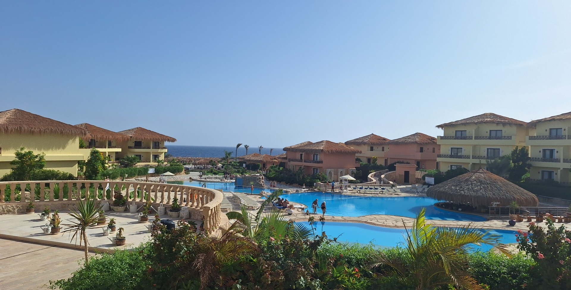 Hotel oceniam średnio ma większe możliwości ale się nie stara jest kilka basenów ale nie są duże w sumie tylko jeden jest głęboki i pływa się w kółko kelnerzy podają drinki z konieczności uśmiech za odpowiednią opłatą pokoje są duże przestronne łazienki czyste materace bardzo wygodne dużo Rozległa plaża piękne nowe leżaki niestety Trafiliśmy na wiatry więc codziennie czerwona flaga bez możliwości nurkowania snurkowania i pływania. jedzenie bardzo słabe to chyba najgorszy i najsłabszy punkt hotelu .monotonny i bardzo mały wybór ,codziennie praktycznie przez tydzień kurczak ryż gotowane warzywa ryba i nic więcej .trzy kolacje a lakart ale szału nie ma bardzo słabe animacje praktycznie w ciągu dnia niewiele animatorów widać wieczorem jakieś krótkie pokazy. hotel jest na odludziu więc naprawdę w ciągu dnia jest nuda do port ghslib nie jest daleko ale hotel nie dysponuje własnym busem i nie wozi gości hotelowych do portu natomiast dysponują taksówką za 25 $, która wiezie 3 godziny czeka ogólnie nie wrócę tam są dużo lepsze hotele