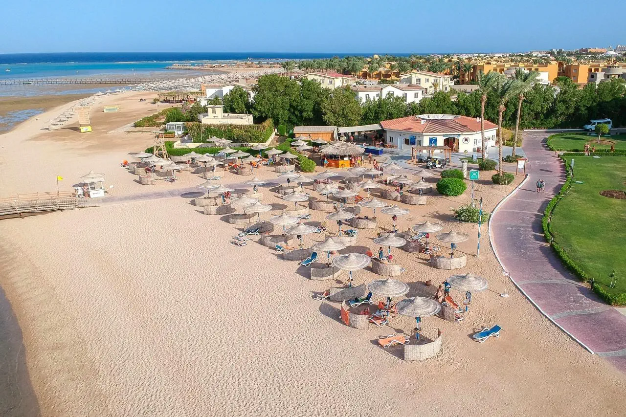 Bezpośrednio przy piaszczystej plaży w zatoce Makadi Bay.