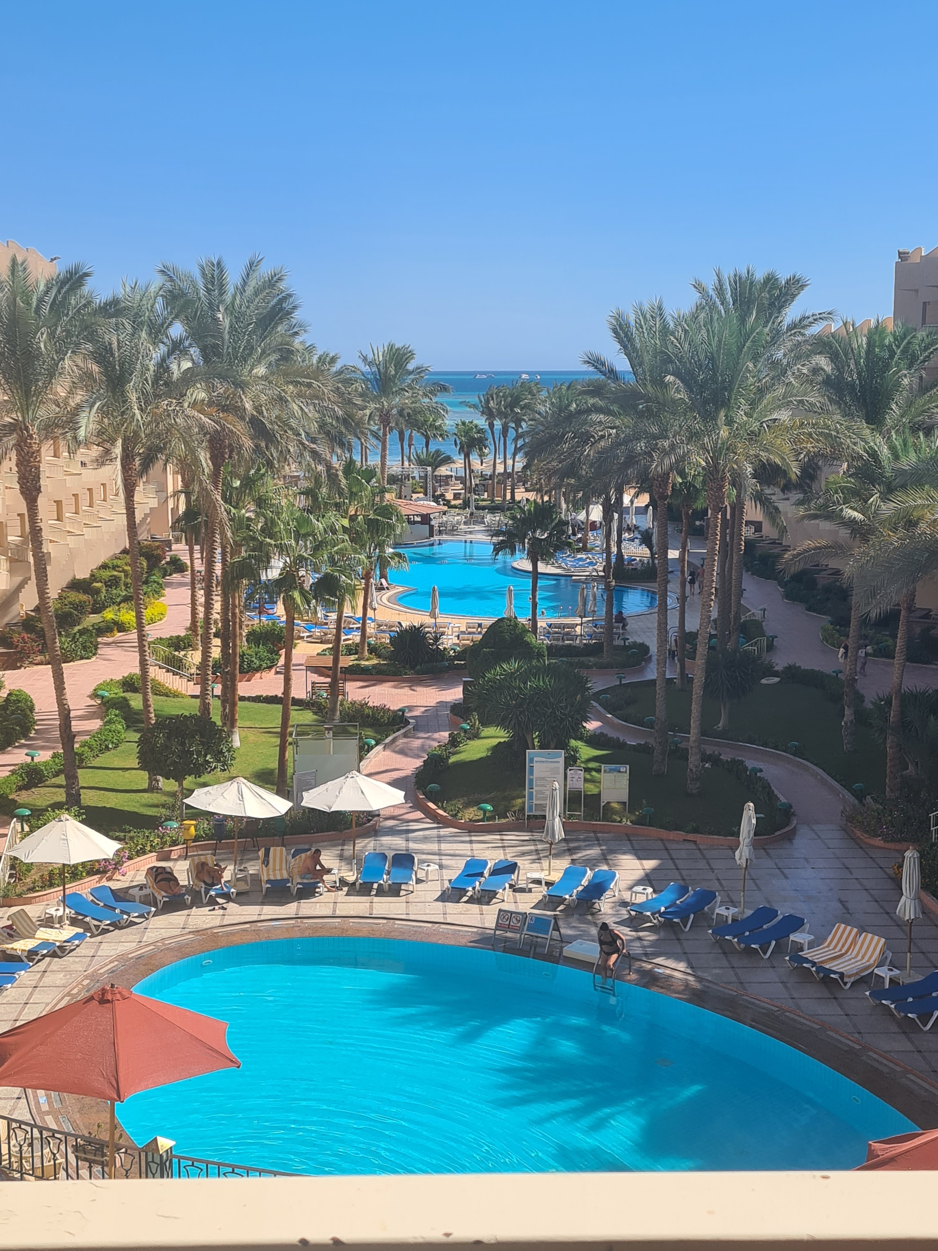 Witam, właśnie wróciliśmy z żoną z wakacji pobyt 07-16.08 otrzymaliśmy pokój 357 ( 2 osobne duża łóżka, które od razu złączyliśmy), boczny widok na Morze ( wszystkie pokoje mają widok na Morze, zależy tylko od położenia pokoju) . Pokoje wszystkie identyczne tylko apartament są większe i przy samym Morzu . Hotel ocenia na dobre 4*. Obsługą hotelu dobra, nie narzuca się ( czy pomocna jak to ws tacy pisali - nie zauważyłem). Jedzenie dobre, mało ale treściwe ( przeciętnie kurczak, wołowina, i 2 razy były przepiórki), dużo ryżu, ziemniaków i Egipdkich dań , surówek i owoców dużo, ciast, ciasteczek ogrom- bardzo pyszne. Serwowana jest też pizza - duża kolejka dla tego nie skosztowałem . BRAK dobrej kawy, to co polecaj to ohyda - nawet w lobby barze kupiłem dla siebie cappuccino za 1,5 $ - niedobra ( szkoda kasy). Nikt głodny nie będzie chodził. Hotel zadbany, dużo zieleni, plam daktylowych. Baseny 2 , dużo leżaków po 9:00 są wolne - nie ma zabujania się o miejsca- to samo jest na plaży, czysta, gruby piasek - bajka, zejście do Morza łagodne lecz kamieniste ( obowiązkowo buty ). Samo Morze ciepłe i mieniące się różnym odcieniami błękitu ( brak żywej rafy( rafa martwa) i brak kolorowych rybek) - my z żoną wykupiliśmy 2 wycieczki na snurfowanie co dało nam mega satysfakcję . Brak WI-FI w hotelu( trzeba sobie wykupić lub kupić kartę - najtaniej na lotnisku 5 $ w hotelu czy sklepikach chcą już 10$). Brak codziennych animacji - dla mnie na plus. Goście hotelowi są z różnych państw - nie ma tego, że obsługa hotelowa kogoś faworyzuje. Hotel godny polecenia, czy chciałbym tam wrócić - raczej nie. Lecz oceniam go bardzo dobrze, bo wrażenia zostały pozytywne.