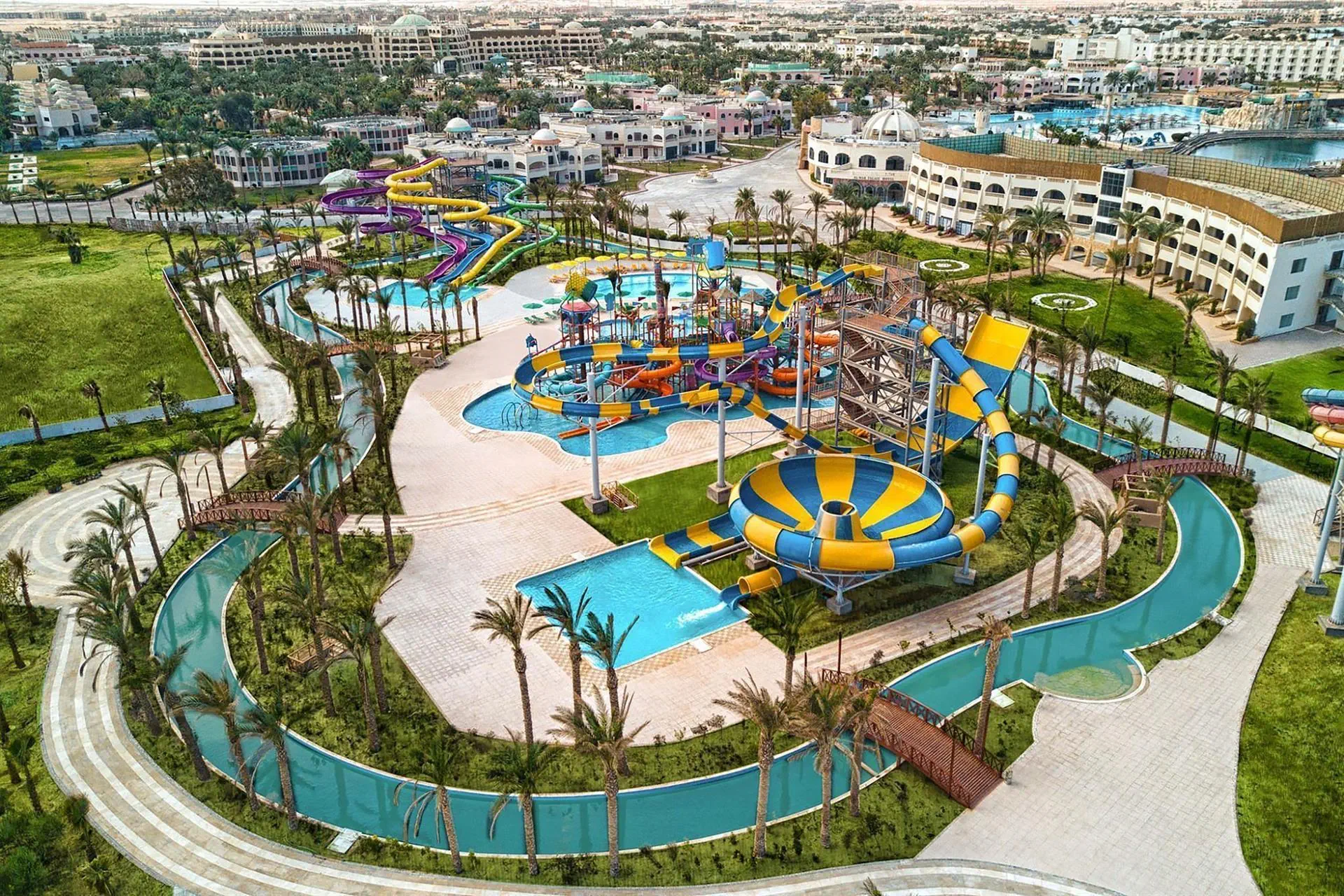 Hotel w pierwszej linii brzegowej położony jest w sercu kompleksu Golden 5 City Hotels, oferując niepowtarzalne widoki na błękitne wody Morza Czerwonego oraz dostęp do prywatnej, piaszczystej plaży. Z luksusowymi pokojami, które zostały częściowo odnowione w 2023 roku, i nowoczesnym wyposażeniem, hotel ten jest idealnym wyborem dla rodzin pragnących niezapomnianych wakacji. Goście mogą delektować się kulinarnymi specjałami w głównej restauracji bufetowej oraz 3 restauracjach a la carte, serwujących kuchnię włoską, rybną i grillowaną. Spokojna atmosfera nad morskim wybrzeżem harmonijnie łączy się z bogatą ofertą rozrywkową, w tym z aquaparkiem z 36 zjeżdżalniami na terenie sąsiedniego hotelu, oraz licznymi programami animacyjnymi, które zachwycą zarówno dzieci, jak i dorosłych. .