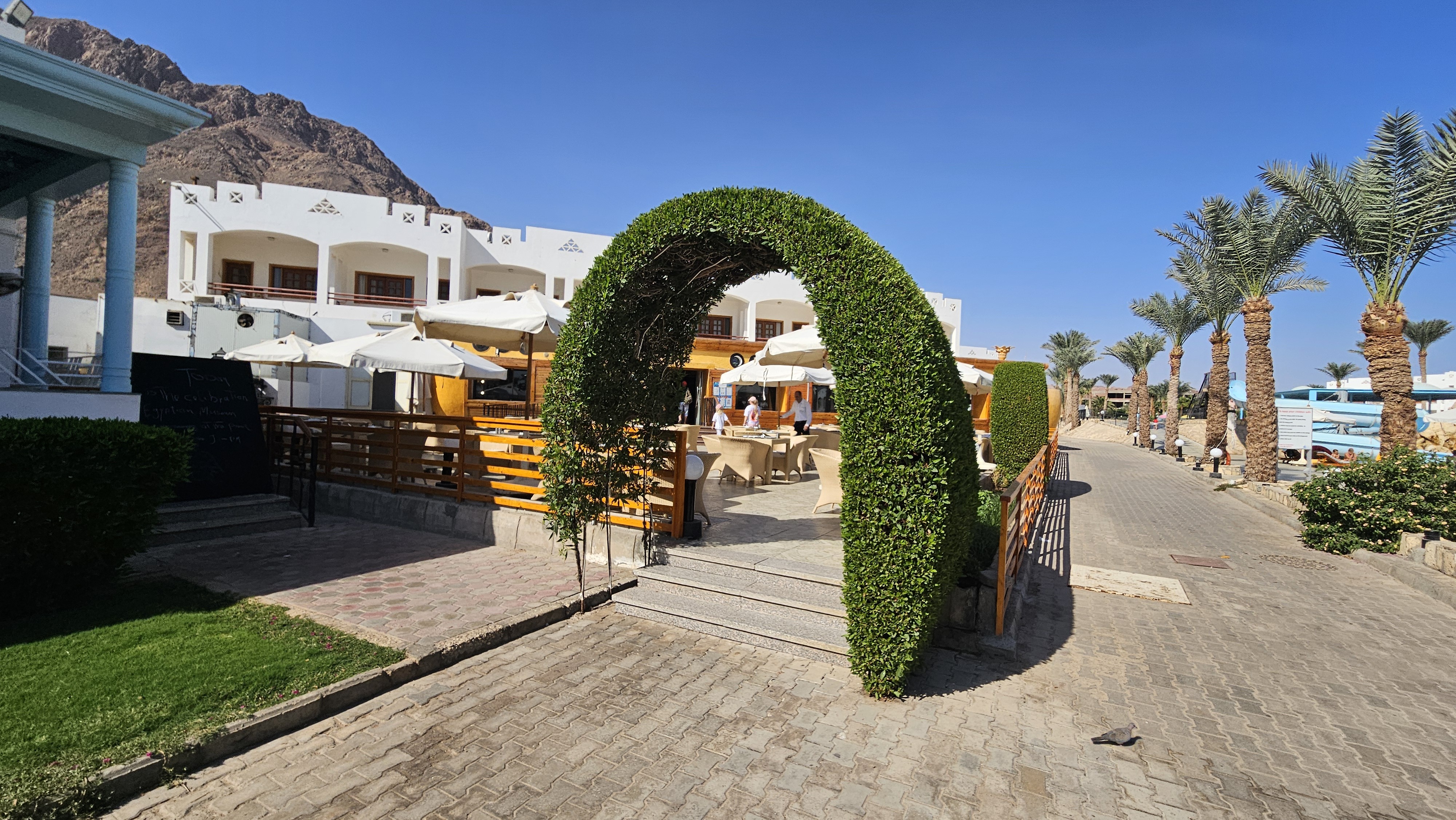 Przepiękne widoki i Góry Synaj i Morze Czerwone. Blisko do miasta Dahab jeżdżą z hotelu busy które zawożą turystów z hotelu do miasta za darmo i przywożą z miasta do hotelu.Są baseny i plaża która jest kamienista ale to w niczym nie przeszkadza ubiera się buty do wody i można podziwiać rafy koralowe które sà blisko brzegu . Po plaży chodzą wielbłądy i można pojeździć na kładach . Są imprezki dla turystów w barze na plaży i fajna wesoła obsługa co bardzo plusuje 😍tam każdy znajdzie coś dla siebie