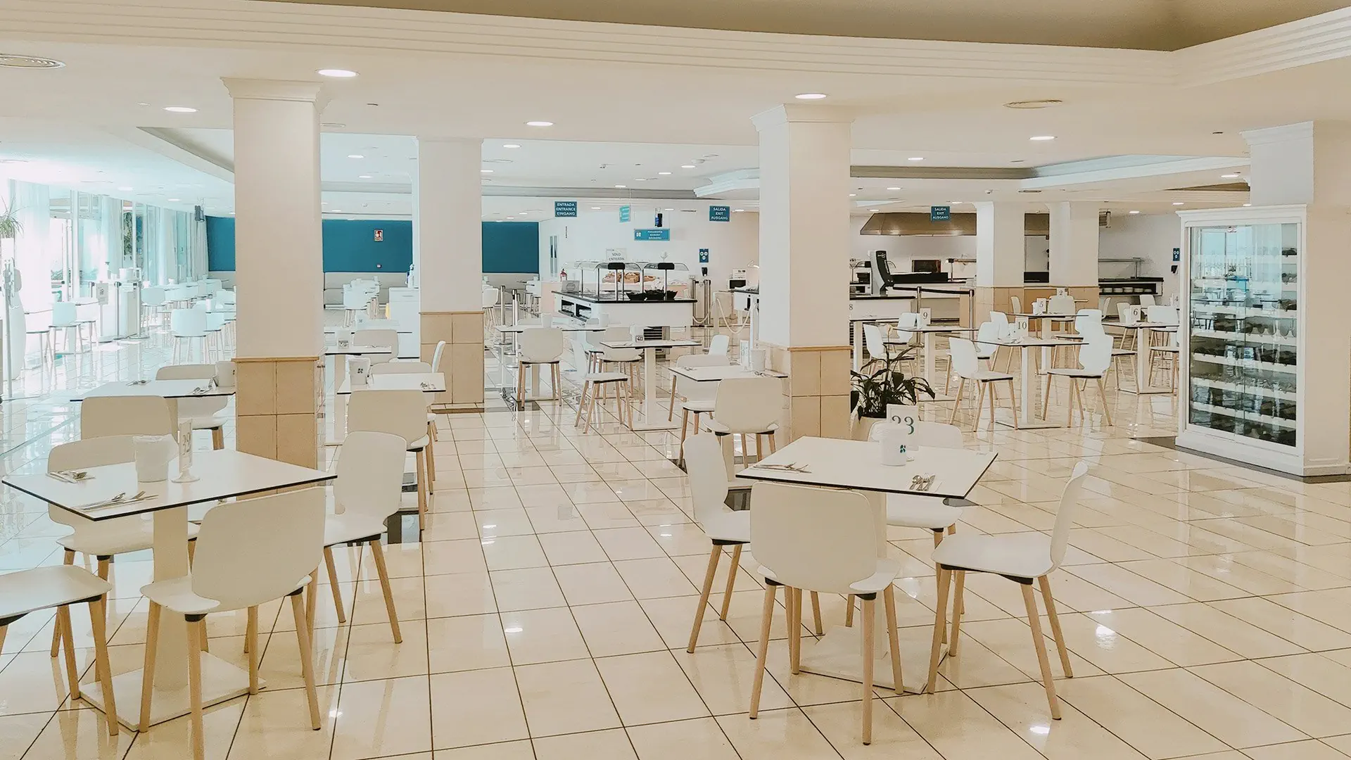 biorąc pakiet all inclusive należy wiedzieć że jest to kompleks połączonych 3 hoteli. Basen wewnętrzy i bar gdzie indziej. niestety organizator taką wiedzą nie podzielił się wcześniej ale mogli sami tego nie wiedzieć. Jest to atrakcja bo można korzystać z stołówki również w innym hotelu. Ale niewiele to zmienia bo jedzenie to same. wszystko ok i standard ok