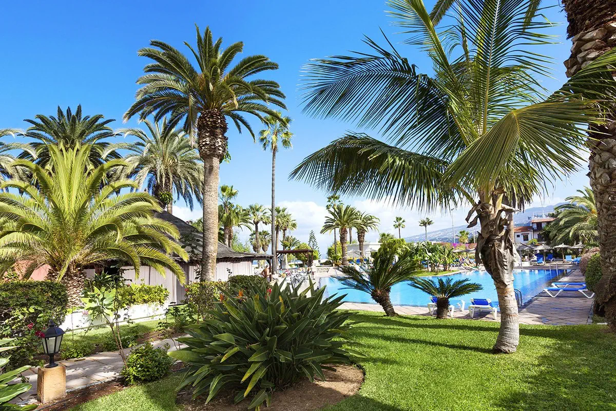 Wakacyjny kompleks hotelowy to prawdziwa oaza spokoju w sercu zielonego Puerto de la Cruz, oferując Gościom wszystko, czego potrzebują do niezapomnianego wypoczynku. Położony pośród bujnych ogrodów, zapewnia relaksującą atmosferę oraz profesjonalną obsługę. Hotel dysponuje nowoczesnymi pokojami, z których Goście mogą podziwiać malownicze widoki na ocean. Wspaniałe doznania kulinarne z lokalnej i międzynarodowej gastronomii można smakować w restauracji oraz kilku barach, oferujących różnorodne drinki i przekąski. Zachwyci również aktywnych Gości, którzy skorzystać mogą z kortu tenisowego i pola do minigolfa. Dodatkowym atutem jest bezpłatny dostęp do Wi-Fi oraz sezonowy bus do centrum miasta i na plaże.