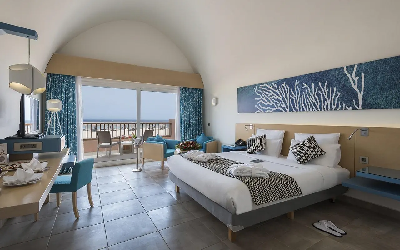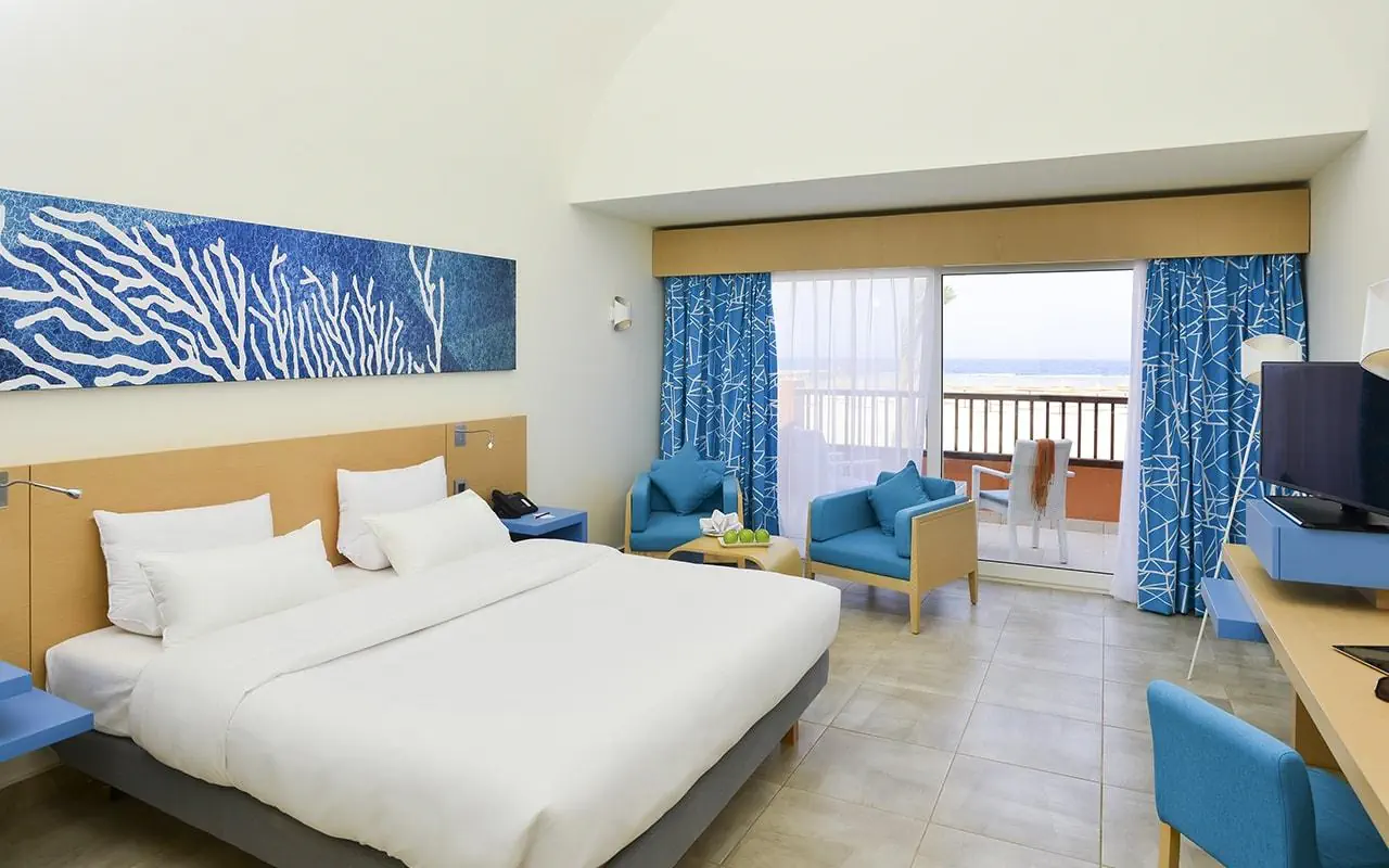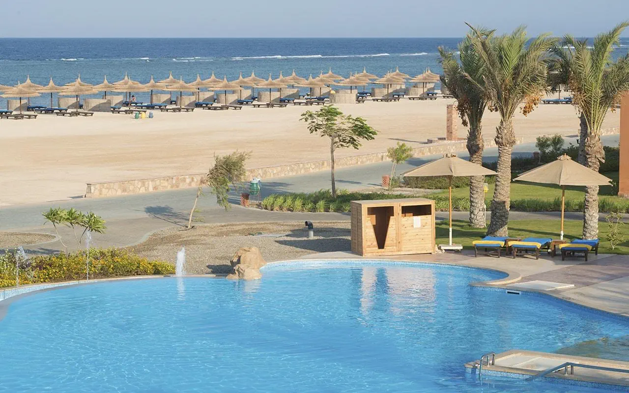 Hotel jest położony daleko od miasta, jeśli komuś to nie przeszkadza, że wokół jest tylko pustynia i nic poza tym, to ok. Pokoje są bardzo czyste, nasz pokój sprzątał (...), bardzo przemiły, uśmiechnięty, życzliwy człowiek. Codziennie dawał nam wodę, wymieniał ręczniki i dbał o czystość na najwyższym poziomie. Ratownicy też bardzo pomocni, uprzejmi, zawsze ręczniki rozkładają na leżakach, rozkładają parasole. Animacje codziennie rozpoczynają się powitaniem od 10, potem jest waterpolo, aqua gym, jest również joga, siatkówka plażowa. Po południami również to co rano. Wieczorem jest codzienne show o godz. 22. Oczywiście bywaliśmy na lepszych ale starają się. Animatorzy zawsze uśmiechnięci, szczególnie polubiliśmy Aurorę i Bondo. Przemili i wspaniali ludzie dbający o najlepszą atmosferę. Jedzenie pozostawia trochę do życzenia. Dosyć monotonne, 1 restauracja, ale każdy znajdzie coś dla siebie. Najlepsze są kolacje i śniadania, z obiadami różnie. Jednak ze wszystkich hoteli, w których byliśmy w Egipcie, to ten pod względem atrakcji, wyżywienia jest najsłabszy i na pewno nie jest to standard 5 gwiazdkowego hotelu. Restauracja A la carte ma przepyszne jedzenie , więc warto z niej skorzystać. Również napoje podczas kolacji są w niej bezpłatne. Na ogromny plus zasługuje przepiękna rafa koralowa przy hotelu. Podczas snurkowania można zobaczyć wiele pięknych i rożnorodnych rybek, płaszczkę, żółwia. Na plaży dostępność leżaków bezproblemowa, ale już przy basenie niestety trzeba ,,rezerwować". Pierwszego dnia chcieliśmy dopiero po śniadaniu przyjść na leżaki, to już nic nie było wolnego....ratownik nam 2 leżaki z różnych części basenów przyniósł i ustawił. Niestety kolejnego dnia już byliśmy jak pozostali Polacy.... w hotelu bardzo dużo Polaków, którzy nie zawsze dbali o czystość: zostawiali kubki, szklanki wszędzie. Mieliśmy dwukrotnie sytuację, że ktoś na nasze leżaki się położył lub nasze ręczniki pościągał więc trzeba było interweniować. Byliśmy 12 dni. W tej cenie, której kupiliśmy wycieczkę, to opłacało się. Wyższe ceny, które potem widziałam, to nie są warte tego hotelu.