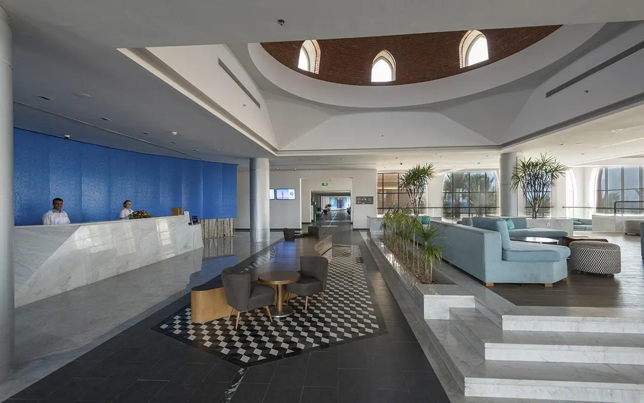 Przestronne lobby i całodobowa recepcja oferują komfortowy pobyt, a główna restauracja La Palme serwuje dania kuchni międzynarodowej w formie bufetu. Znajduje się tu także restauracja a la carte z kuchnią włoską, wymagająca wcześniejszej rezerwacji. Hotel oferuje również wymianę walut, bankomat, sklep z pamiątkami, centrum konferencyjne dla 200 osób, internet bezprzewodowy w miejscach ogólnodostępnych, room-service, lekarza na wezwanie, opiekunkę do dziecka, pralnię oraz udogodnienia dla niepełnosprawnych.