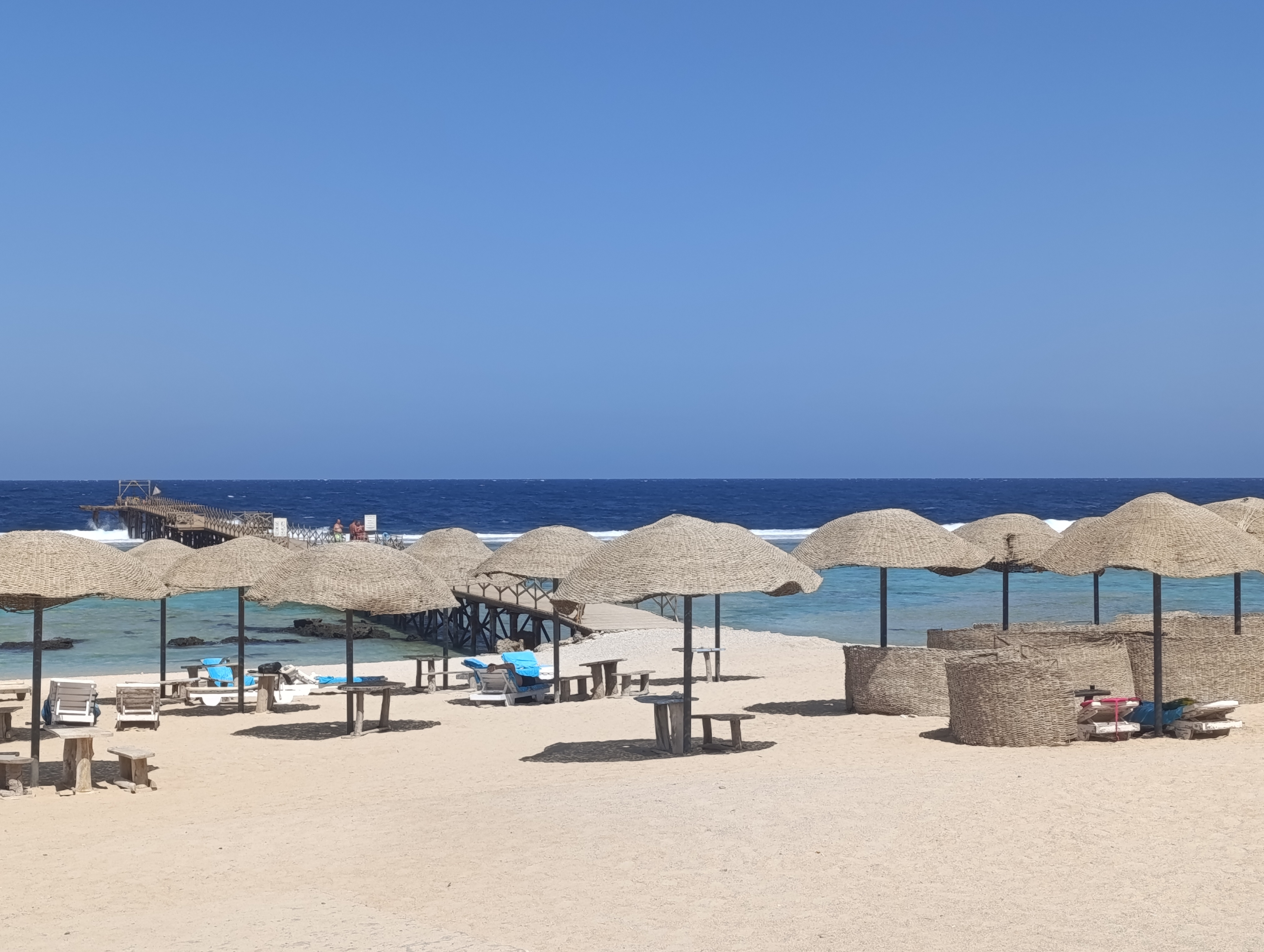 Piękna plaża. Pomocna obsługa, kelnerzy.