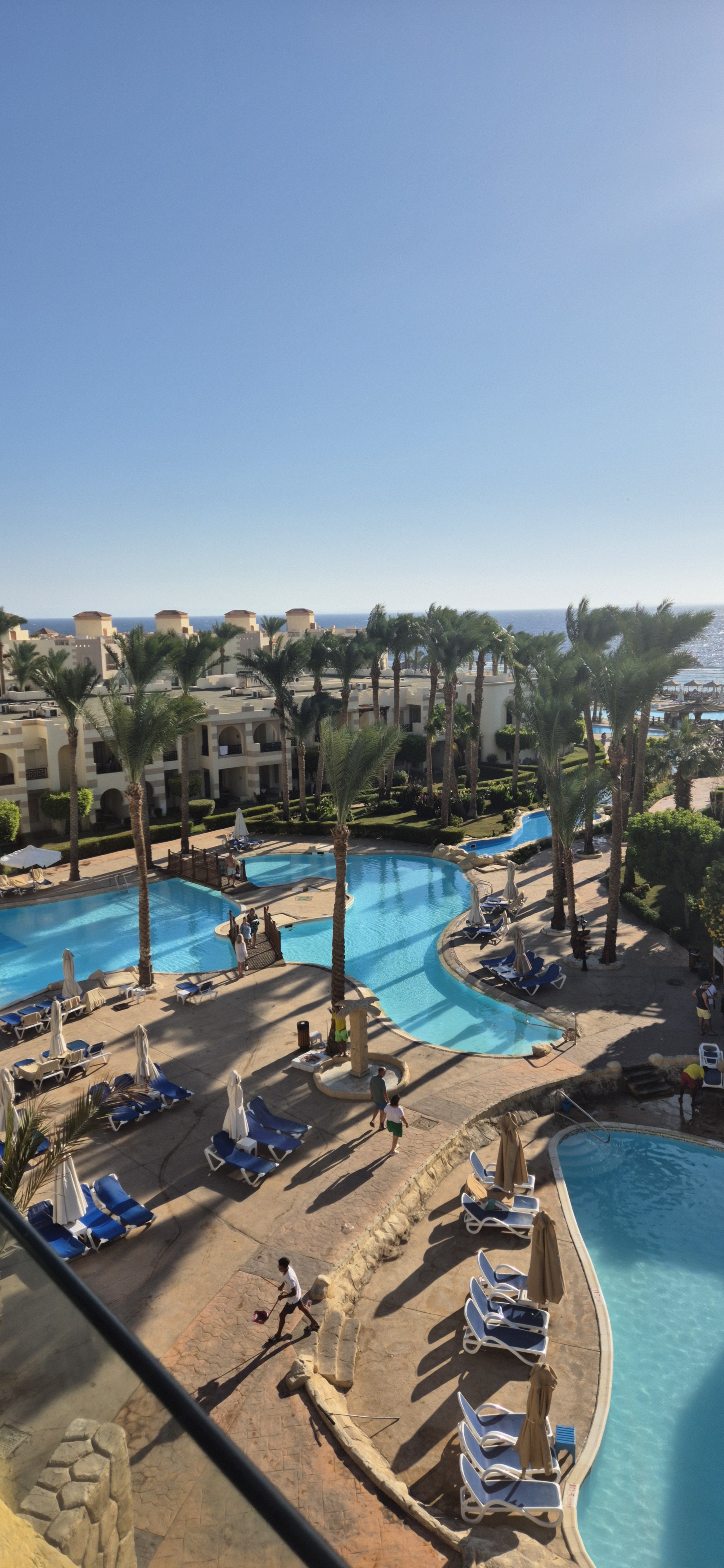 Dużo basenów, bardzo ładny krajobraz, duzy hotel, plaza czysta, hotel mą wlasna rafe,