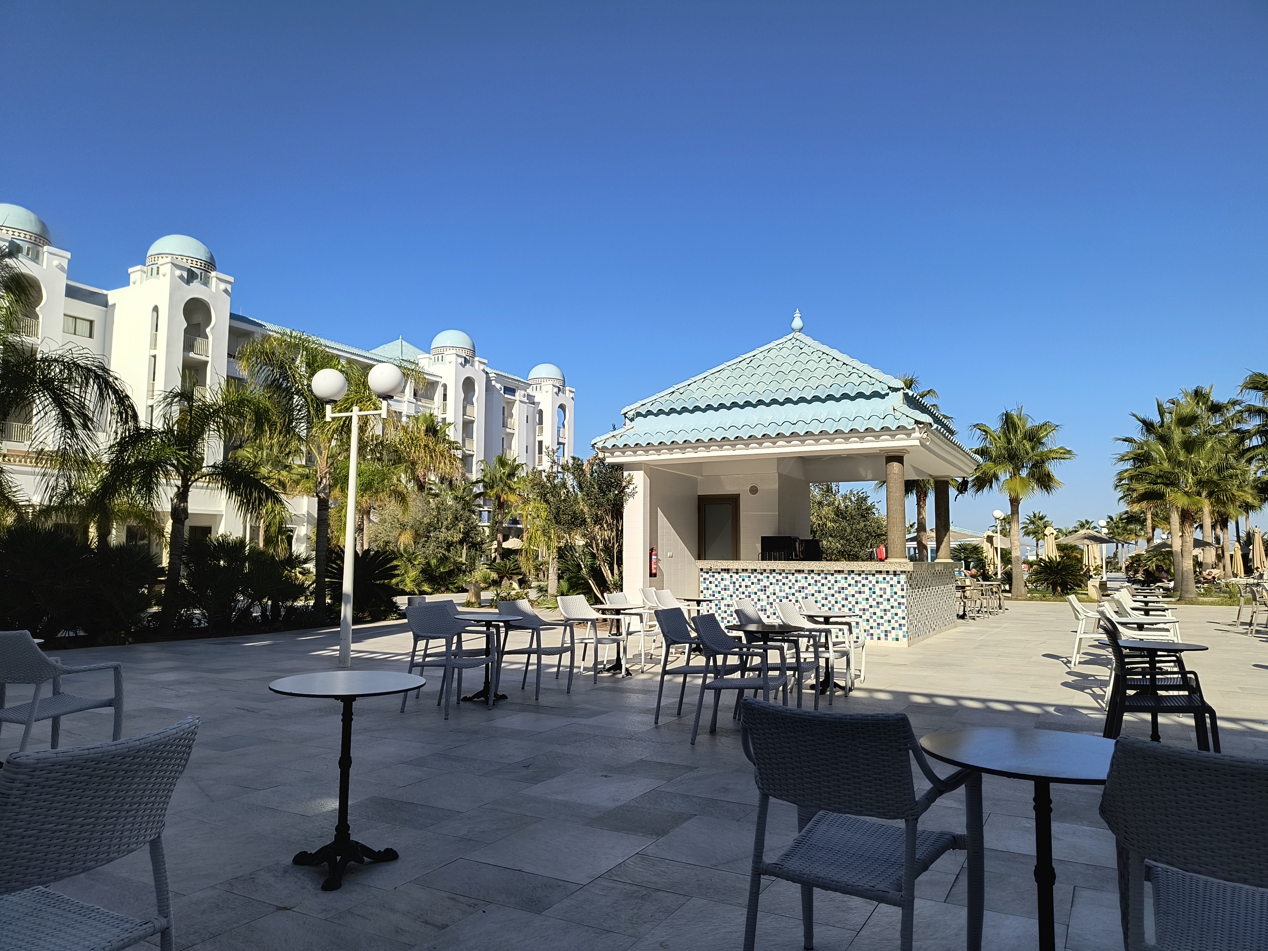 To elegancki i nowoczesny pięciogwiazdkowy hotel, położony bezpośrednio przy szerokiej, piaszczystej plaży w malowniczej dzielnicy turystycznej Port El Kantaoui. Otoczony bujnym ogrodem, oferuje niezrównane komfortowe pokoje z widokiem na morze oraz doskonałą obsługę, co czyni go idealnym miejscem na luksusowe wakacje. Zarówno rodziny z dziećmi, pary, jak i grupy przyjaciół znajdą tu coś dla siebie, korzystając z bogatej oferty sportowej i rekreacyjnej, w tym kortów tenisowych, siłowni, i rozrywki w postaci animacji oraz wieczornych pokazów. Smakosze docenią wyśmienitą kuchnię, serwowaną w różnorodnych restauracjach, od lokalnych przysmaków po dania międzynarodowe. Relaks zapewni strefa spa z bogatą ofertą masaży i zabiegów. Hotel zachwyca harmonijnym połączeniem współczesnej elegancji z rodzinnym klimatem, tworząc niezapomniane wrażenia dla każdego Gościa.