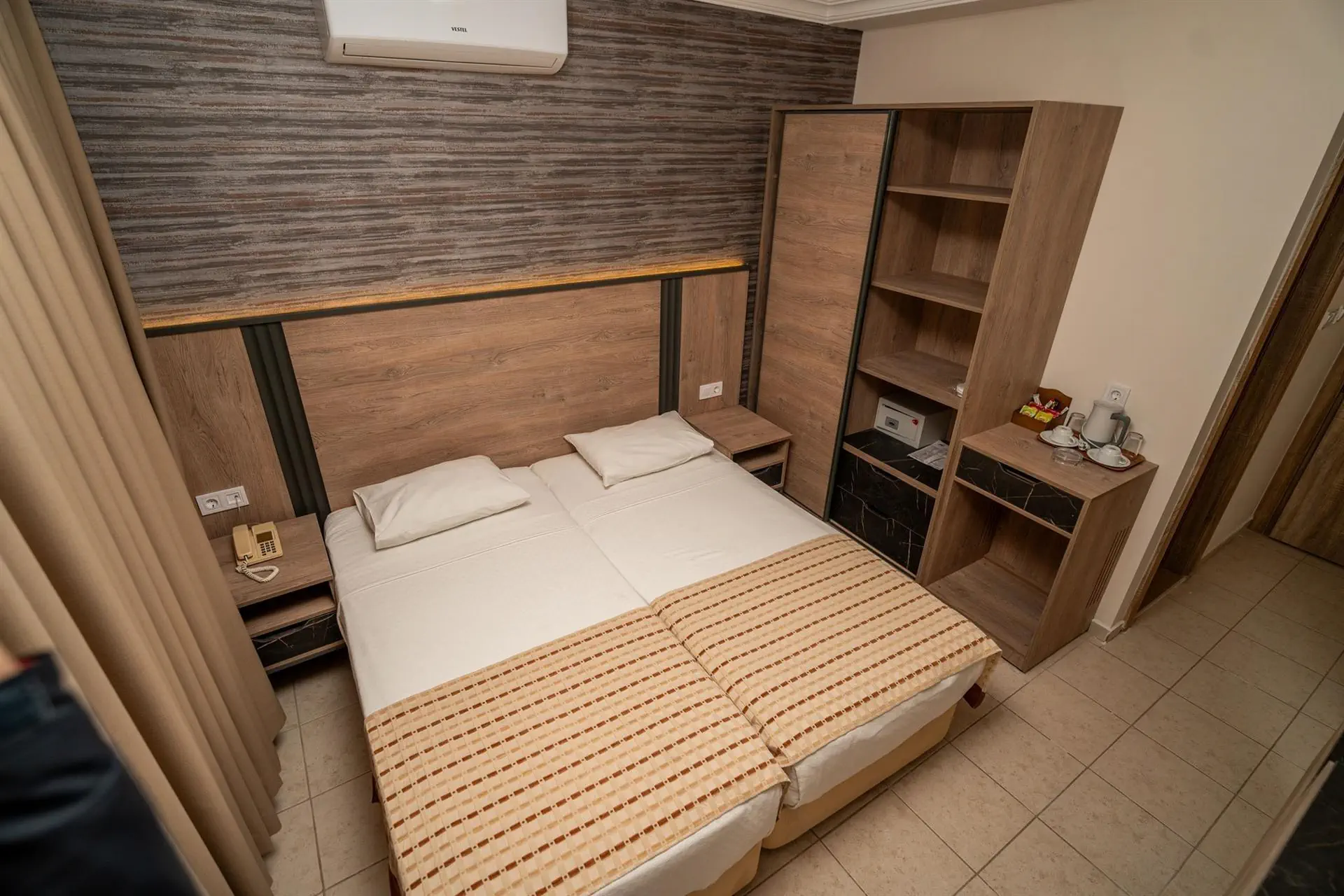 Hotel w dobrej lokalizacji w miarę blisko do centrum i trasy wylotowej do Marmaris. Standard hotelu przecietny tak jak i czystość i stan sprzętów w pokoju który otrzymaliśmy.Generalnie otrzymaliśmy dla nas dwojga mały i ciemny pokój bez balkonu.Po rozmowie z rezydentem i szefem hotelu mielismy otrzymac inny w ciagu następnej doby ale niestety bez echa.Na szczęście klimatyzacja w pokoju dawała radę a poza tym wielki zaciek na ścianie przy łazience przypominał nam ze jesteśmy w tanim tureckim hotelu.łózko kontynentalne i dosyc wygodne. Serwis sprzątający ok. ręczniki wymieniane na czas. Co na pewno na plus to jedzenie oraz zaangażowanie obsługi hotelowej. Większośc gosci to niestety rosjanie na których nastawieni sa właściciele hotelu no i obsługa z krajów poradzieckich. Basen nieduży ale czysty lezaków sporo przy nim. Ogólnie wakacje udane poza jakością pokoju.