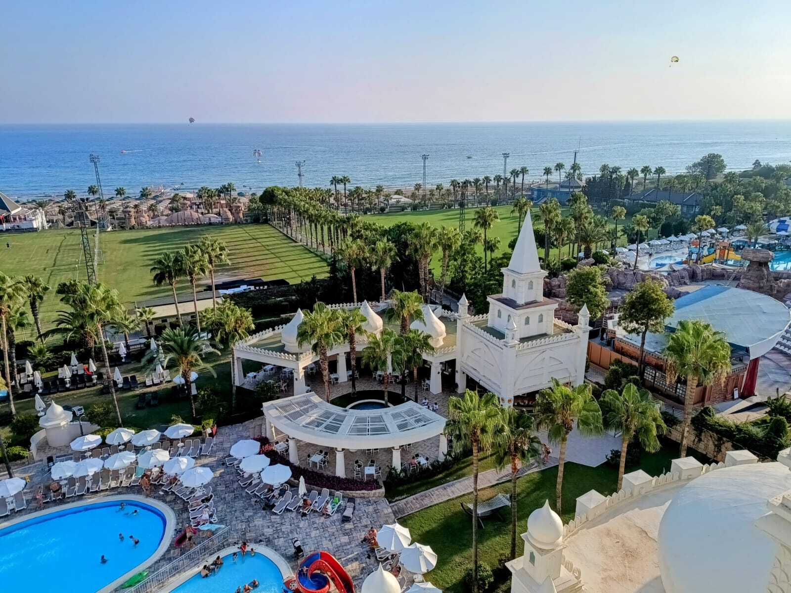 Hotel urządzony w klasycznym stylu śródziemnomorskim, charakteryzujący się nowoczesną i elegancką architekturą, zaprasza Gości na komfortowy pobyt pełen atrakcji. W otoczeniu pięknego, rozległego ogrodu, hotel oferuje dostęp do piaszczystej plaży oddalonej o zaledwie kilka kroków. Na terenie obiektu znajdują się aquapark ze zjeżdżalniami wodnymi, zarówno dla dorosłych, jak i dzieci. Hotel posiada również restaurację główną oraz pięć restauracji a la carte.