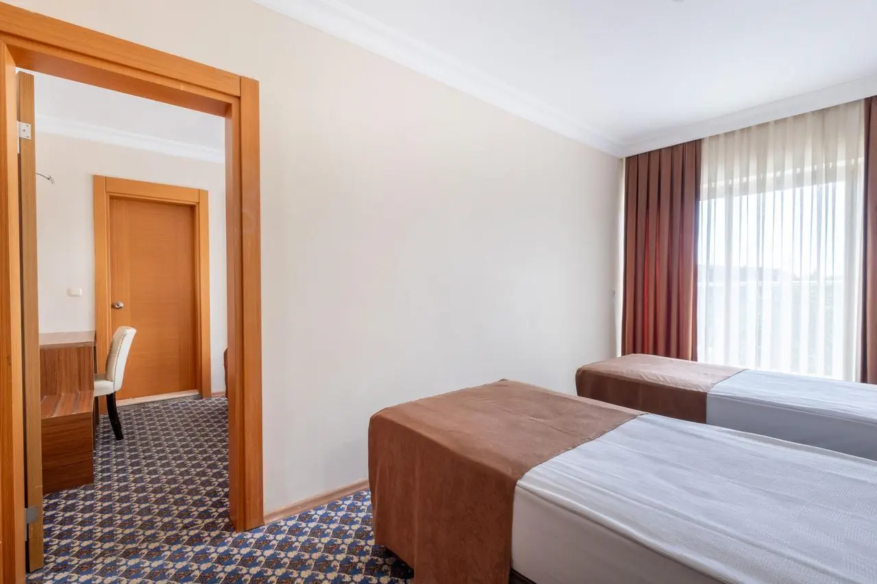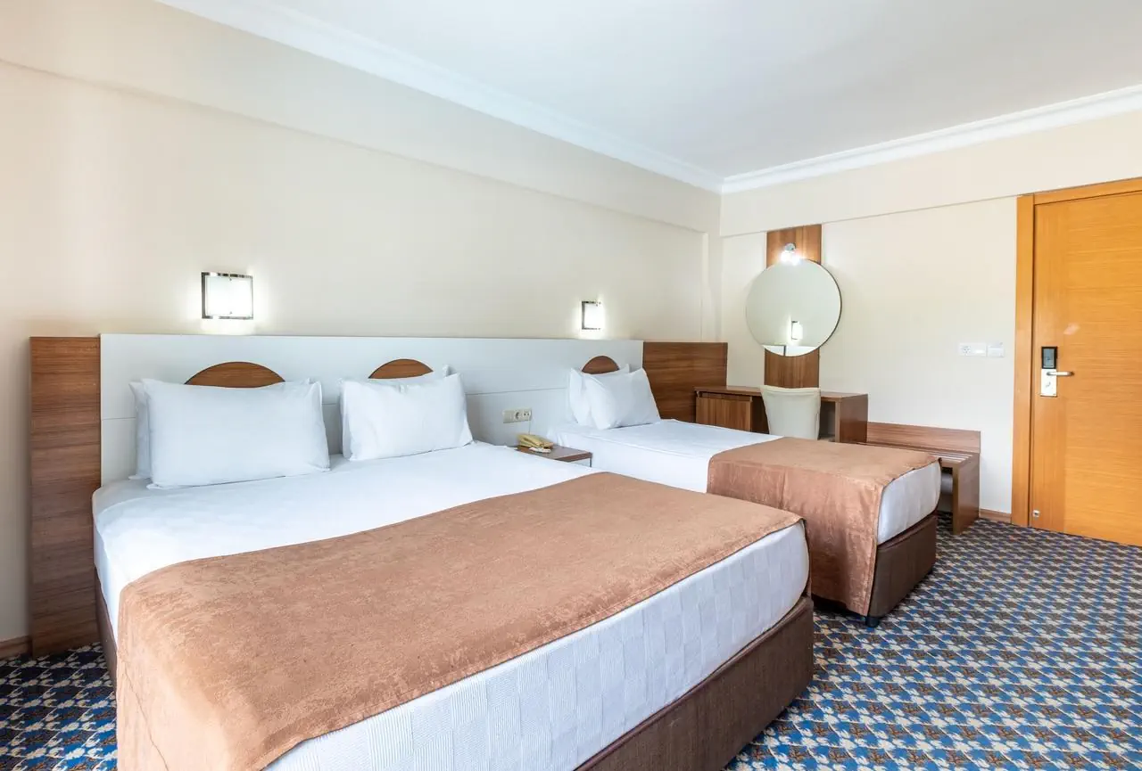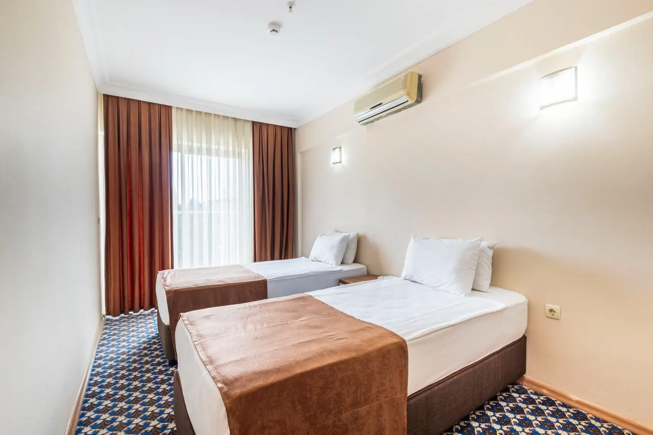 standardowy - 2-os. (możliwość 1 dostawki), ok. 25 m2, nowoczesny, indywidualnie sterowana klimatyzacja, łazienka (prysznic, wc; suszarka), telewizja satelitarna, telefon; za opłatą - sejf (ok. 3 EUR/doba), mini-bar (bezpłatnie woda mineralna na powitanie); bezpłatne łóżeczko dla dziecka do 2 lat na zamówienie przed przyjazdem; balkon (stolik i krzesełka), widok na ogród lub góry; - rodzinny - 2-os. (możliwość 1 lub 2 dostawek), ok. 35 m2; wyposażenie jak w pokoju standardowym.