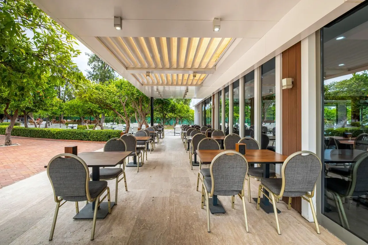 Czterogwiazdkowy, nowoczesny, całkowicie odnowiony w 2011 r., 177 pokoi, 2 budynki, 3 piętra, lobby, całodobowa recepcja, restauracja - dania w formie bufetu, kuchnia międzynarodowa, dostępne foteliki dla dzieci, dania wegetariańskie; bar w lobby, bar przy basenie, bar na plaży, kantor, sklepy; sala konferencyjna dla 70 osób, ogród; za opłatą - internet bezprzewodowy w lobby, room-service, fryzjer, opiekunka do dziecka, pralnia, wypożyczalnia samochodów; udogodnienia dla niepełnosprawnych; akceptowane karty kredytowe - Visa, MasterCard.